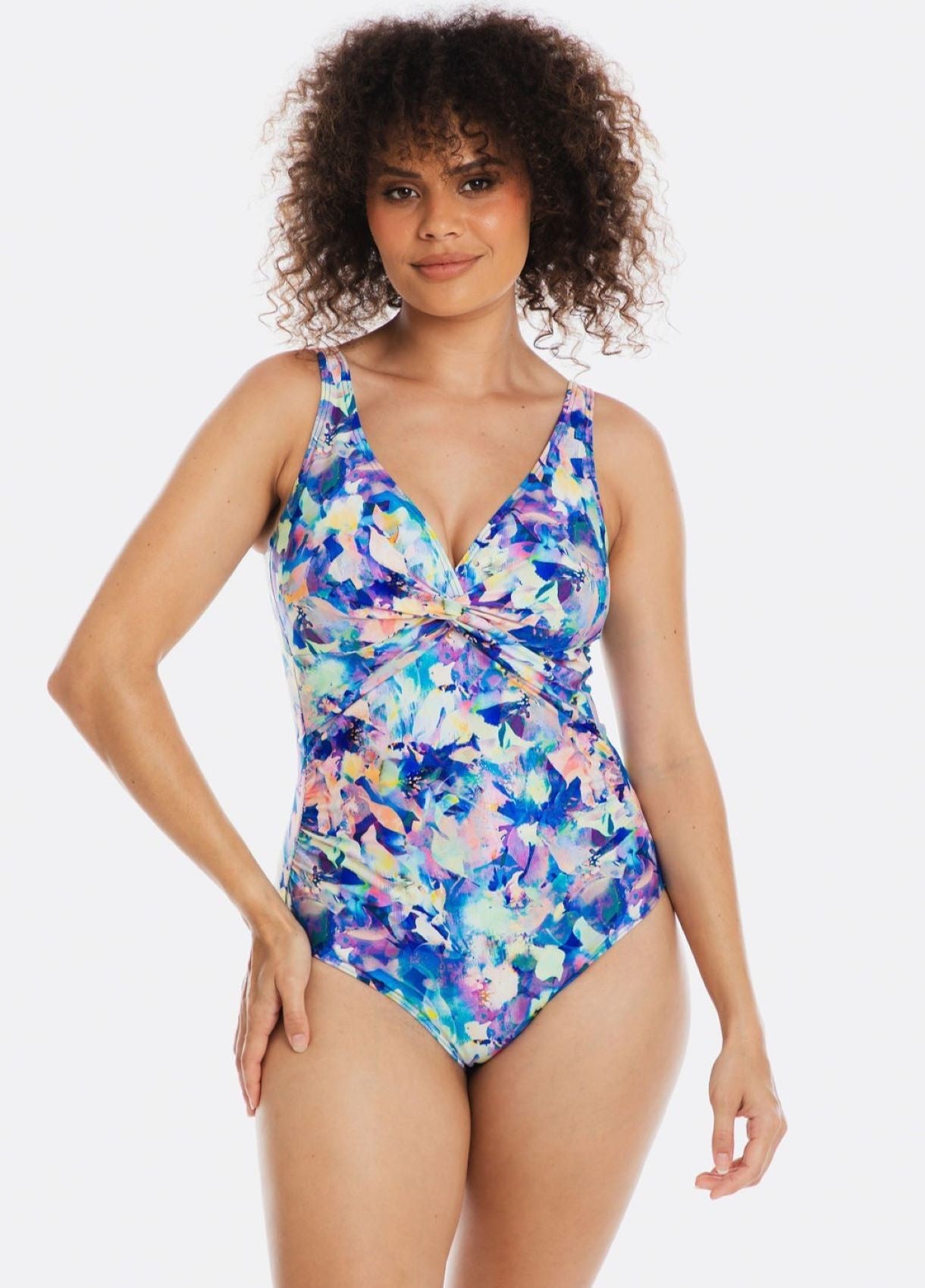A quintessential Togs V Neck one piece swimsuit with a twist, designed for a flattering fit.
