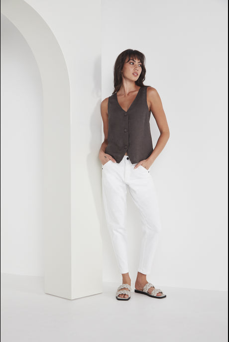 Crafted from 100% pure Linen, the Land Vest features a V-neckline, three-button closure and a relaxed fit that falls to the hip. Its lightweight, breathable material is perfect for a day in the sun, while its timeless design provides a simple, versatile look.