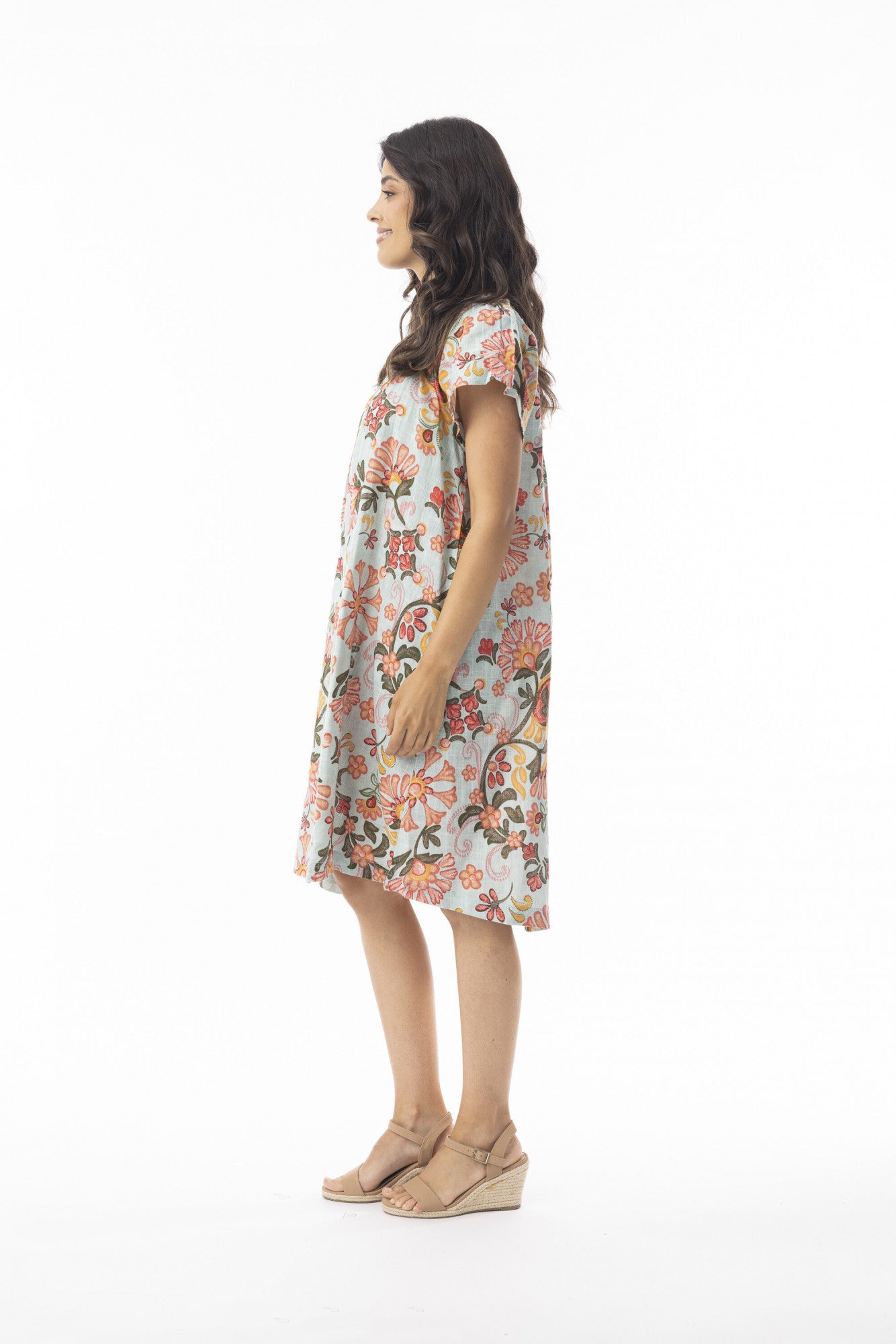 Meet our stylish garment, the Macieo Square Neckline Dress. Featuring a chic ruched square neckline, relaxed fit, and flared cap sleeves, it exudes effortless charm and comfort. This is the perfect choice for beach days or sunny outings.